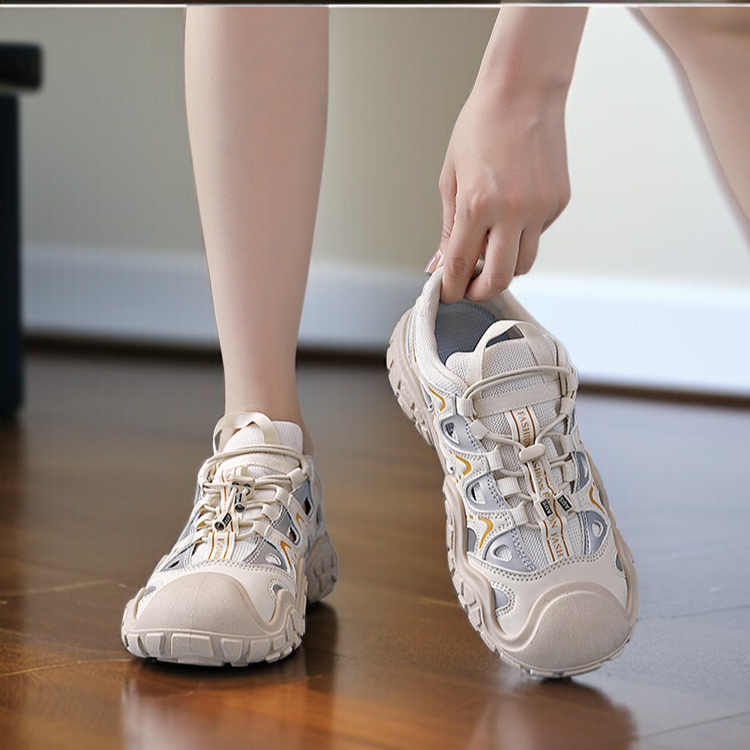 ● 통풍이 우수한 메쉬 소재로 제작되어 장시간 착용해도 발이 시원하고 쾌적합니다. ● 발바닥 전체에 쿠션감을 더해 마치 똥 밟는 듯한 폭신한 착화감을 경험할 수 있습니다. ● 세련된 펀칭 디자인과 트렌디한 아빠 신발 스타일로 데일리룩에 포인트를 더해줍니다. ● 미끄럼 방지 아웃솔로 다양한 활동 시 안정감을 제공하며, 가벼운 무게로 장시간 신고 있어도 부담이 적습니다.